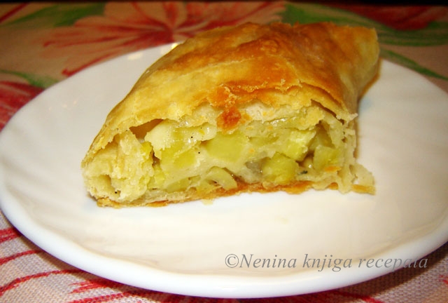U međuvremenu napravite nadjev. Krumpir ogulite i narežite na male kockice, dodajte nasjeckani luk te papra i soli po želji i sve dobro izmiješajte.